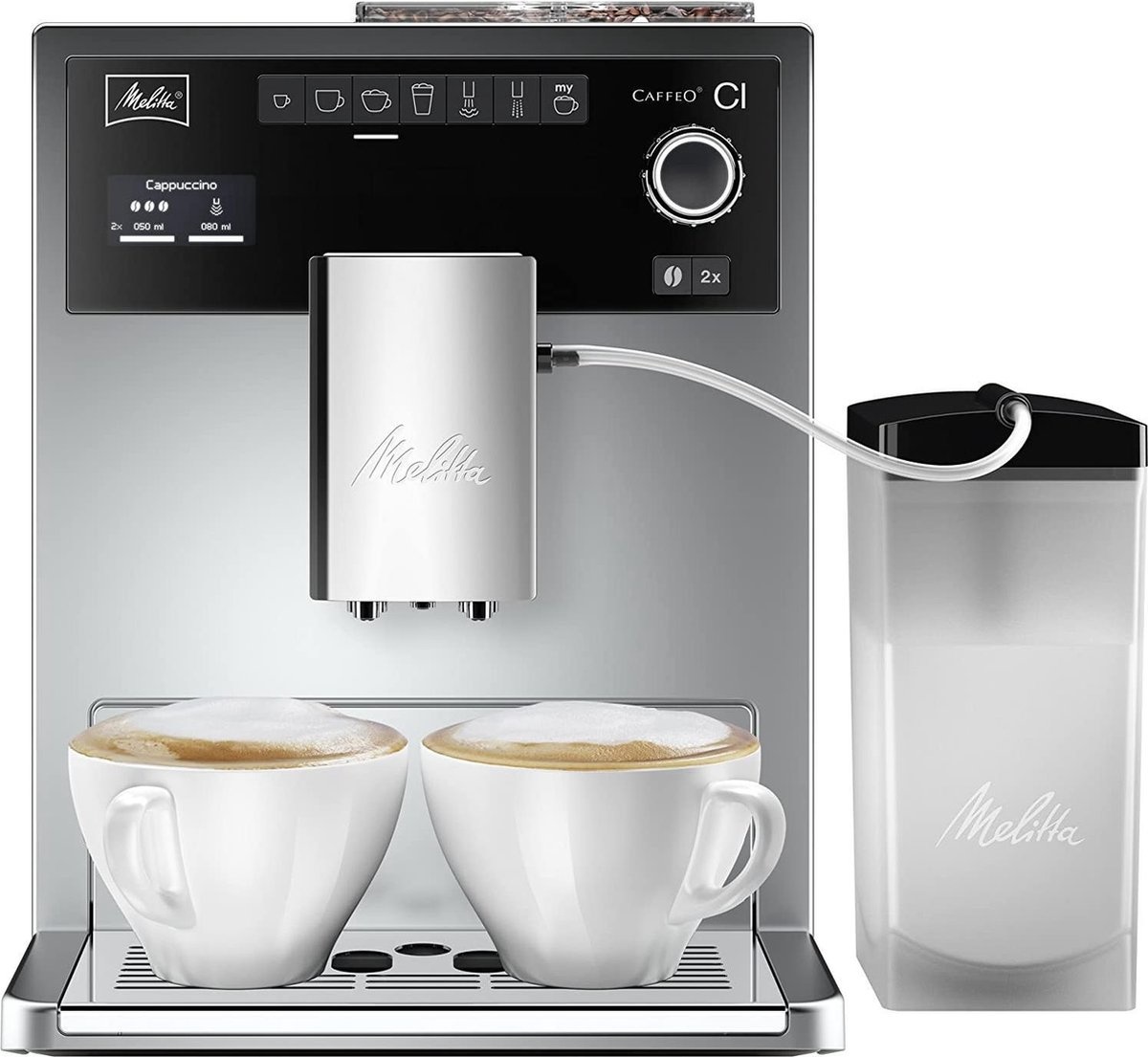 Met de Melitta CI espressomachine maak je snel en gemakkelijk je favoriete koffie en melkspecialisteit via de snelkeuzefuncties. Deze espressomachine met koffiebonen van Melitta kan de volgende 4 koffiespecialiteiten snel bereiden als koffie creme, espresso, cappuccino en latte macchiato. Verder kun je in de instellingen ook nog eens je eigen profiel opslaan en die van je familie, zodat je altijd jouw favoriete kopje koffie kan zetten. Zet tot twee koffie en melksspecialiteiten tegelijkertijd en geniet elke dag van jouw favoriete kop koffie met de Melitta CI espressomachine.