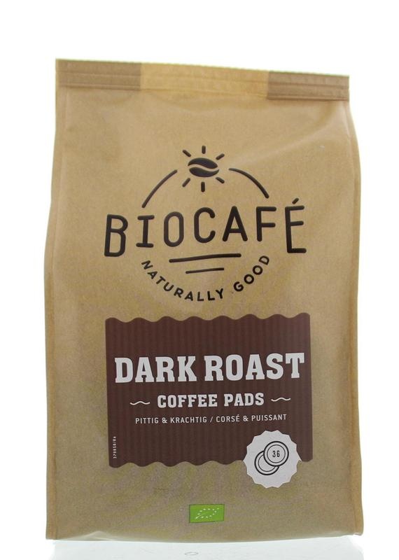 Met biocafe koffiepads Dark Roast zet u in een handomdraai een heerlijke kop koffie met een mooie cremelaag. De melange van arabiva en robusta bonen uit Mexico en Peru wordt net wat langer gebrand, wat de koffie haar krachtige smaak geeft.