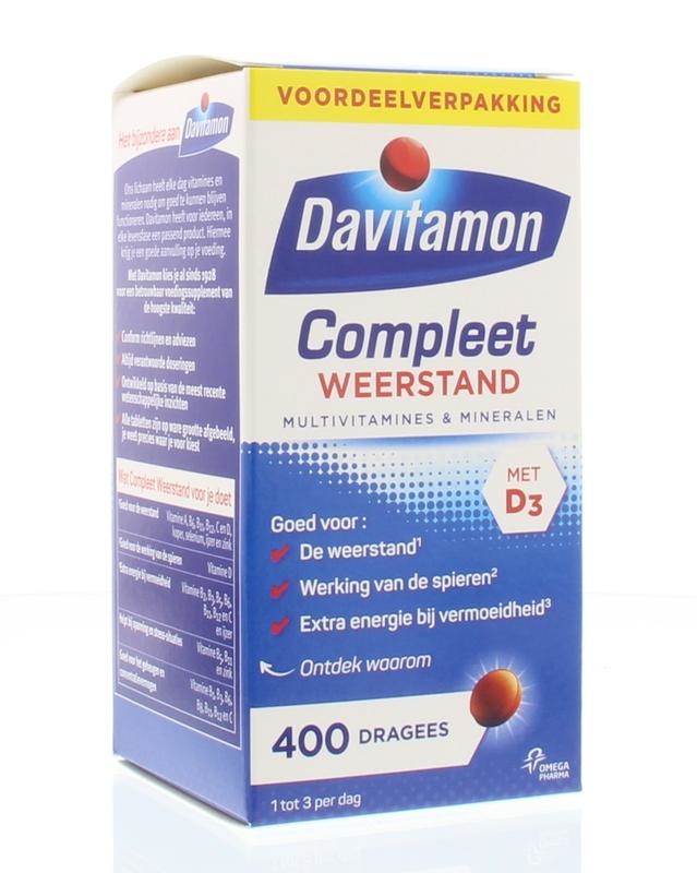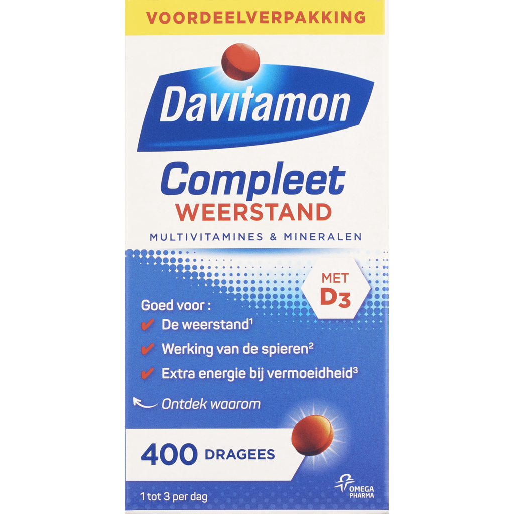 Davitamon Compleet Weerstand vult tekort aan vitaminen en mineralen aan. Helpt bij de opbouw van weerstand en draagt bij aan een gezond immuunsysteem.