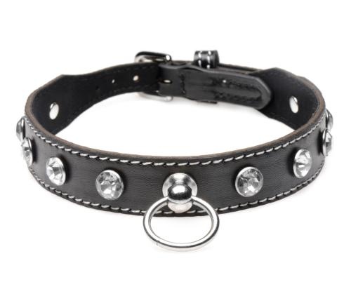 Geef je kinky look een glinsterende boost met deze zwarte choker van Strict. De rode glinsterende Rhinestone stenen zorgen voor een schitterende look. Dankzij de grote ring kun je het combineren met verschillende accessoires en bondagetouwen. De halsband is gemaakt van vegan PU-leer en is eenvoudig schoon te maken. Reinig het met een zachte doek en een milde zeep of toycleaner.