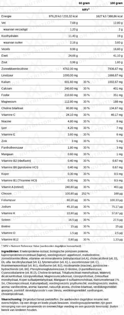 De basis van de Diet Shake - Lactose Free wordt gevormd door erwtenproteïne-isolaat: een hoogwaardige en lactosevrije eiwitbron. Daarnaast zijn er eiwitten uit pompoenpitten toegevoegd die zijn aangevuld met voedingsvezels en een rijk profiel aan vitamines en mineralen. Één serving Diet Shake - Lactose Free bevat maar liefst 24,6 gram eiwit, 10 gram vezels en slechts 2,2 gram suiker.