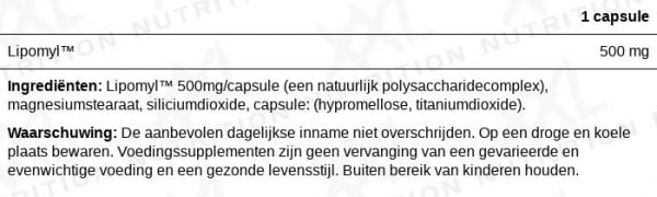 Fat Binder is een CE gecertificeerd medisch hulpmiddel en bevat per capsule 500 milligram van het gepatenteerde Lipomyl™. Dit is een natuurlijke polysaccharide die tot wel 60 keer zijn eigen gewicht aan vet kan binden. Voor iedere 2 capsules staat dat gelijk aan maar liefst 540 kilocalorieën aan vet! Dit maakt Fat Binder een vetblokker supplement dat maar liefst 380% effectiever is dan de huidige marktleider die maar 15 gram vet kan binden per gram.