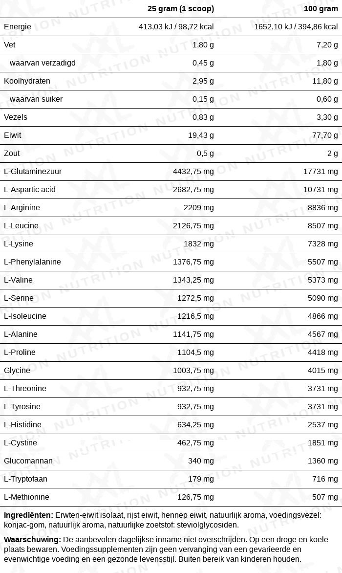 Door het gebruik van eiwitten uit erwten, rijst en hennep voorzie je jouw lichaam van kwalitatief hoogwaardige eiwitbronnen. Door de combinatie van deze drie bronnen bevat Green Protein een uitgebalanceerd aminozuurprofiel en heeft het een hoge biologische waarde. Zo bevat iedere shake een aanzienlijk deel van de essentiële aminozuren en BCAA’s. Ook lost de Green Protein goed op in melk of een andere drank naar keuze, dus met deze eiwitshake werk je eenvoudig aan jouw eiwitinname.