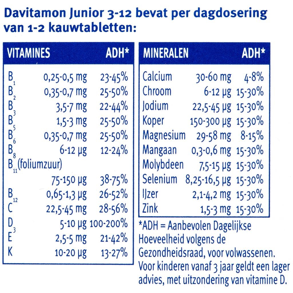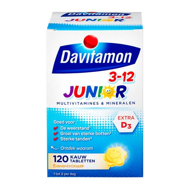 Davitamon Junior 3+ kauwvitamines is afgestemd op de behoeftes van kinderen vanaf 3 jaar.