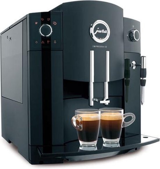 JURA Impressa C5. Kastontwerp: Vrijstaand, Producttype: Espressomachine, Kleur van het product: Zwart. Capaciteit watertank: 1,9 l, Koffie invoertype: Koffiebonen, Gemalen koffie, Koffiezet apparaat type: Volledig automatisch. Vermogen: 1450 W. Breedte: 280 mm, Diepte: 415 mm, Hoogte: 345 mm. Afmetingen (BxDxH): 280 x 325 x 410 mm