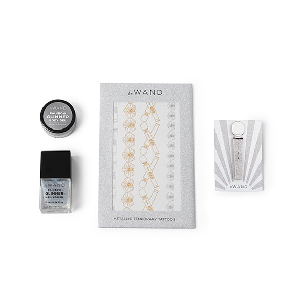 Draadloos, douchevriendelijk en lichaamsveilig, Le Wand Petite is perfect om alleen of met koppels te spelen, waar uw plezierreizen u ook brengen. De interne oplaadbare USB-batterij en het reisslot maken dit de perfecte reisgenoot voor al je on-the-go knikken! De All That Glimmers Special Edition Le Wand Petite-set wordt geleverd met een pleziergids, een bijpassende, glitterachtige maar discrete reiskoffer, een speld om te pronken met je pleziertrots, en een set Rainbow Glimmer-nagellak en bodygel om All That Glimmers te maken , Jij!