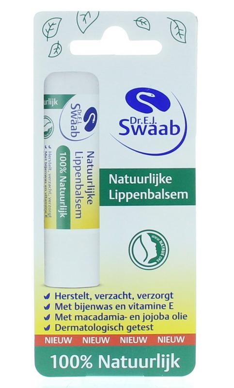 Dr. E.J. Swaab Lippenbalsem 100% natuurlijk is een natuurlijke lippenbalsem op basis van bijenwas. Verrijkt met Vitamine E, Macadamia olie en Jojoba olie. Dermatologisch getest.
