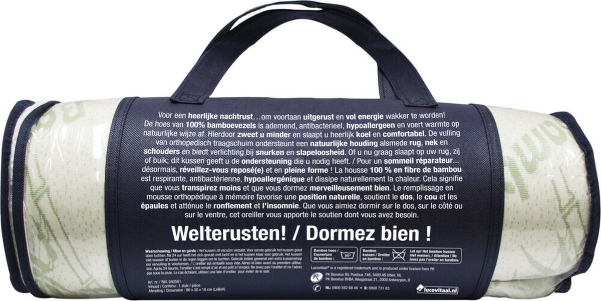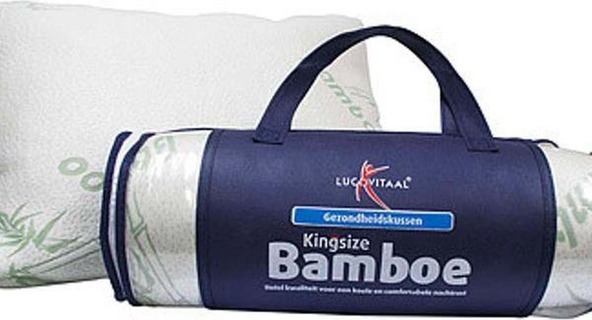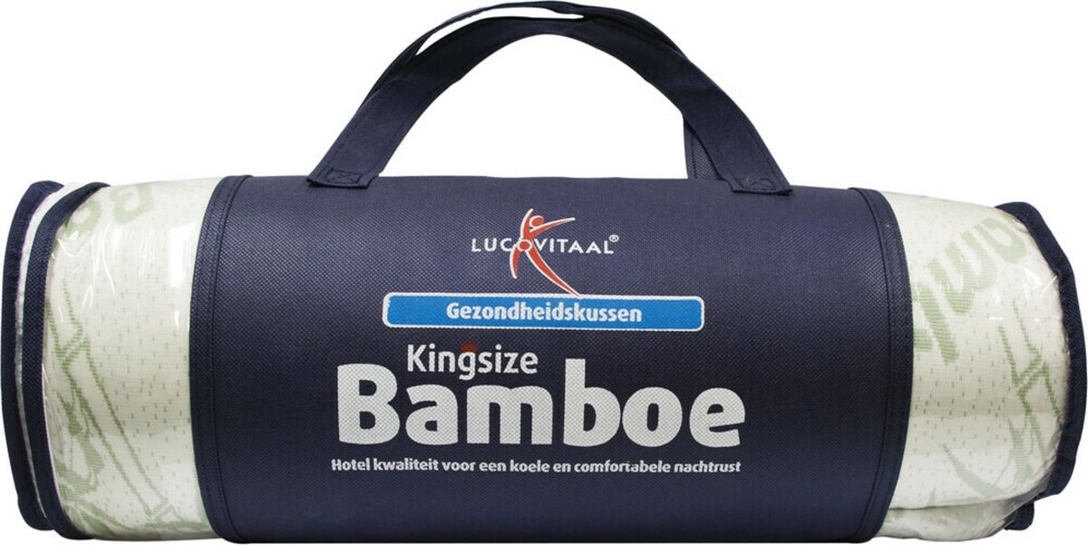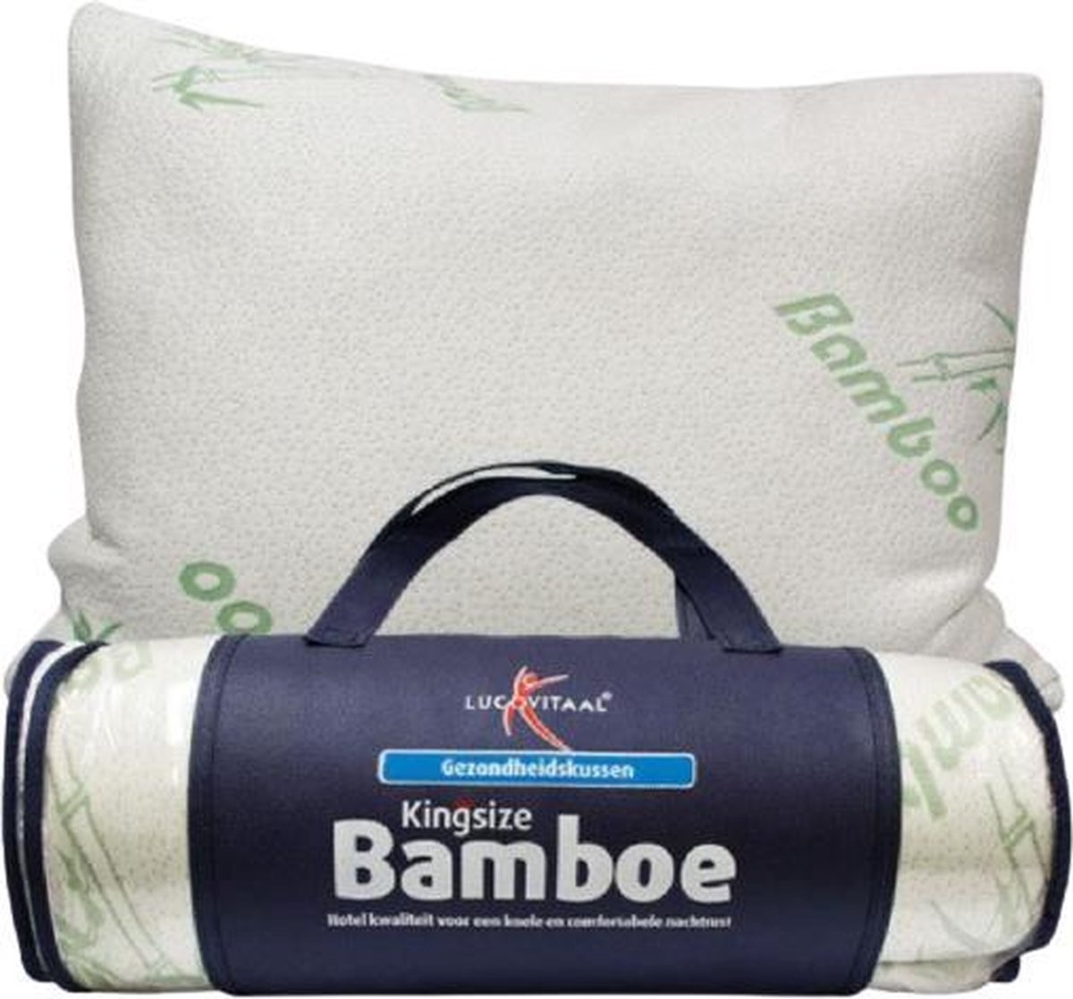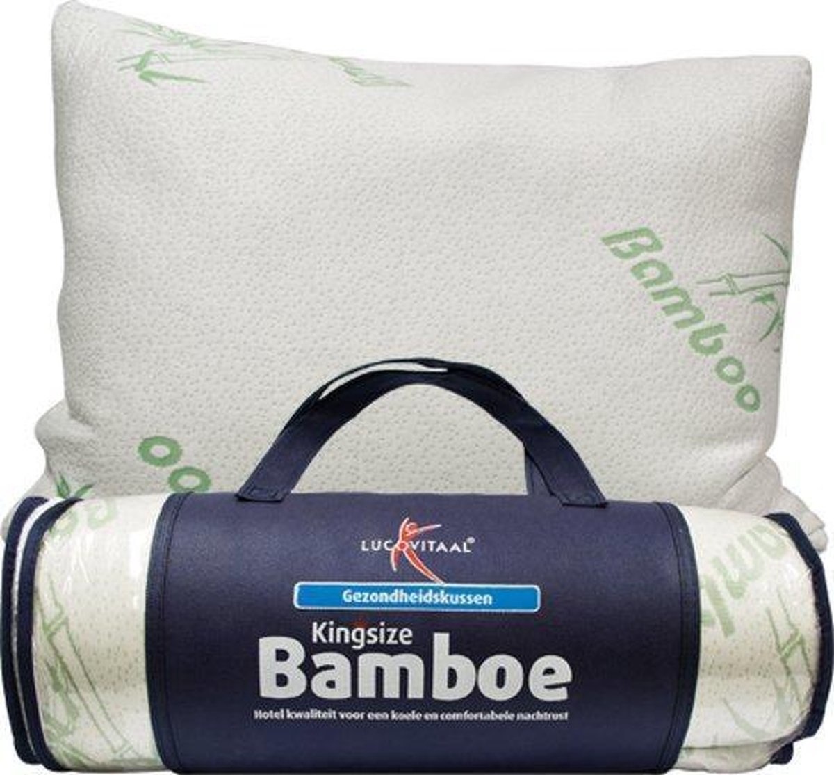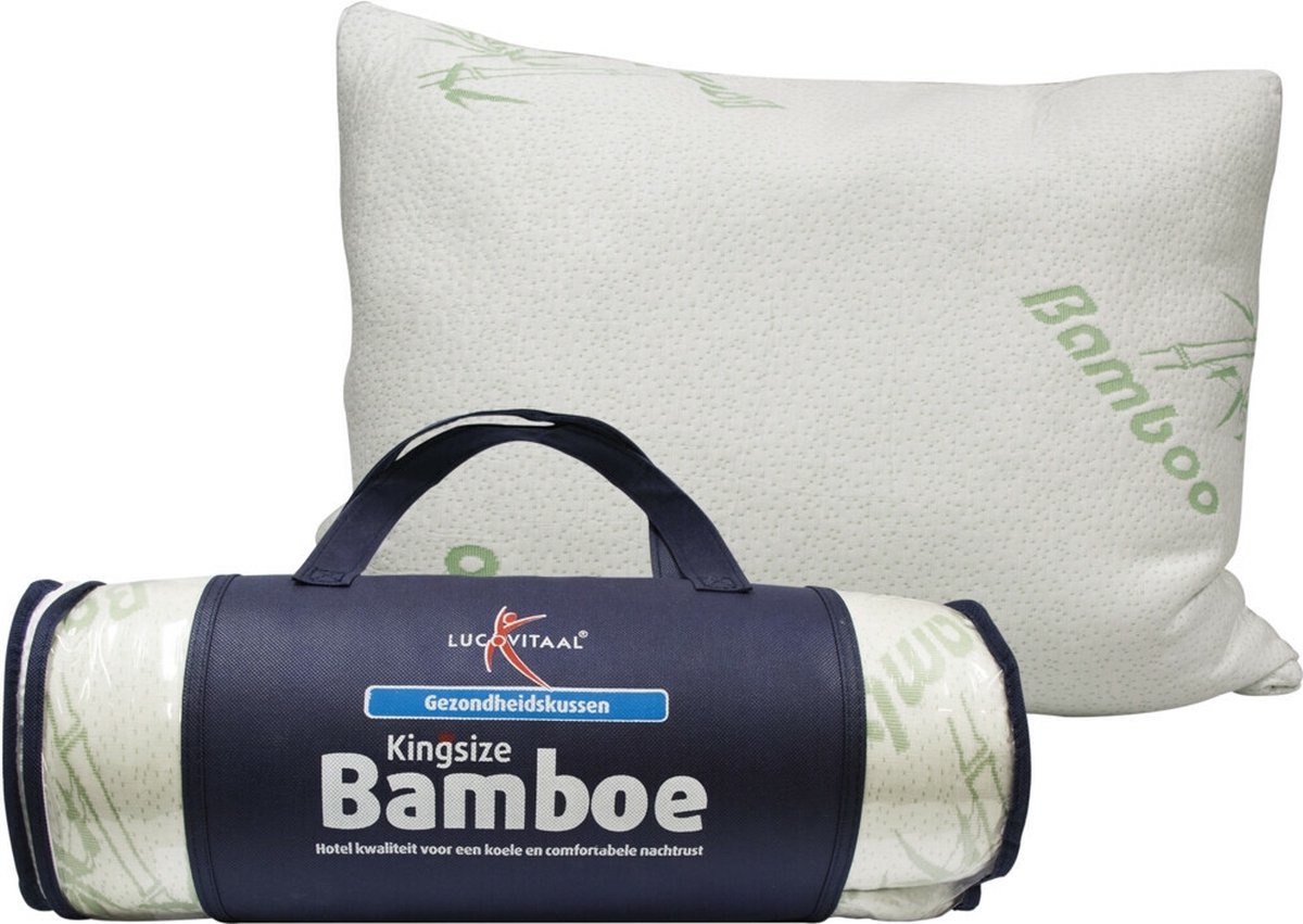 Lucovitaal Kingsize Bamboe Hoofdkussen is een kussen met een hoes van 100% bamboevezels en een vulling van orthopedisch traagschuim. Voor koele, comfortabele nachten en geschikt voor elke slaaphouding. Voor een heerlijke nachtrust... om voortaan uitgerust en vol energie wakker te worden! De hoes van 100% bamboevezels is ademend, antibacterieel, hypoallergeen en voert warmte op natuurlijke wijze af. Hierdoor zweet je minder en slaap je heerlijk koel en comfortabel. De vulling van orthopedisch traagschuim ondersteunt een natuurlijke houding. Wakker worden met pijnlijke (nek en schouder) spieren en gewrichten is verleden tijd. Net als snurken en slapeloosheid! Of je nu graag slaapt op je rug, zij of buik; dit kussens geeft je de ondersteuning die je nodig hebt.