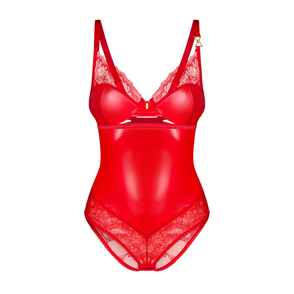– Rode teddy met decoratief kant en uitsnede onder de borst