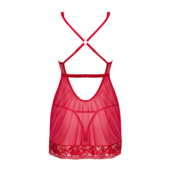 Ben je op zoek naar een lingeriesetje dat je zintuigen zal prikkelen? De Lacelove Babydoll en string zijn een recept voor verzengend hoge temperaturen in de slaapkamer. Kijk maar naar de doorschijnende stof en de kanten details in intens rood. Klaar voor een hete nacht vol passie?