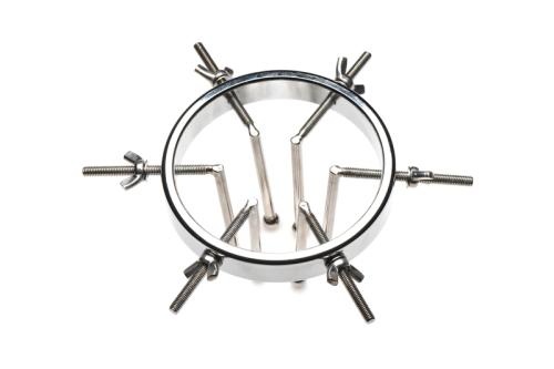 Gemaakt van sterk, duurzaam, nikkelvrij, en roestvrij staal is deze bijzondere anaal plug bruikbaar met alle soorten glijmiddelen. De plug bestaat uit één grote ring met een diameter die verstelbaar is van 2,5 tot maar liefst 10 centimeter. De 6 gladde staven hebben kleine ronde balletjes aan het uiteinde zodat hij comfortabel aanvoelt tijdens het gebruik. Als hij volledig is uitgerekt is hij zelfs groot genoeg om je vuist er door te steken. Elke dilator kan individueel vaster gedraaid worden of losser gemaakt door gebruik te maken van de vleugelmoeren. Reinig na gebruik met lauwwarm water en een toycleaner.