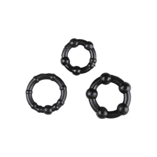 Laat je partner zien hoe lang je door kan gaan met deze erectieringen. Anders dan bij de meeste cockrings, zijn deze ringen flexibel voor een comfortabele pasvorm en passen ze mannen van iedere maat. Bovendien zijn ze gemakkelijker aan te brengen en te verwijderen. Elke ring heeft unieke bobbeltjes voor extra stimulatie tijdens het dragen. Elke set bevat drie penisringen in drie verschillende maten en met drie verschillende patronen.
