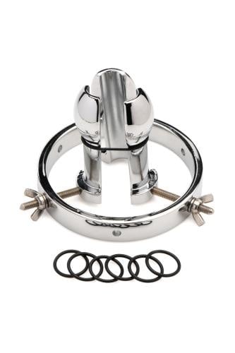 Gemaakt van sterk, duurzaam, nikkelvrij, en roestvrij staal is deze bijzondere anaal plug bruikbaar met alle soorten glijmiddelen. De plug bestaat uit één grote ring met een diameter die verstelbaar is van 4 tot maar liefst 10 centimeter waardoor hij ideaal is voor fisting. De taps toelopende punt is eenvoudig in te brengen. De plug komt met 6 siliconen O-ringen die zich om de plug heen wikkelen. Reinig de plug eenvoudig na gebruik met lauwwarm water en een toycleaner.