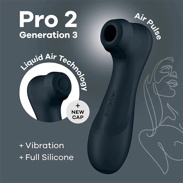 Als je de voorkeur geeft aan de vertrouwde en volledig contactloze Air Pulse-technologie voor de clitorisstimulatie, dan biedt de Pro 2 Generation 3 ook twee siliconen kapjes om uit te kiezen. Met 12 luchtdrukprogramma's die je alleen kunt gebruiken of in combinatie met 5 vibratiestanden en 7 patronen, kun je de stimulatie volledig aanpassen aan jouw wensen.