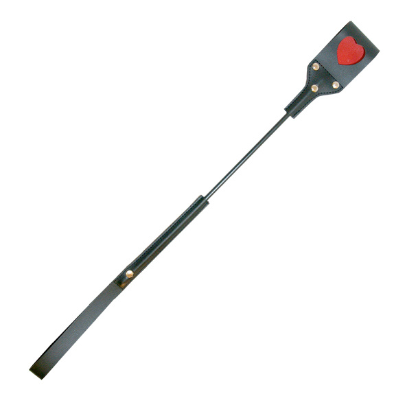 Zweep met hart afdruk. Zwart met leren polsbandje.