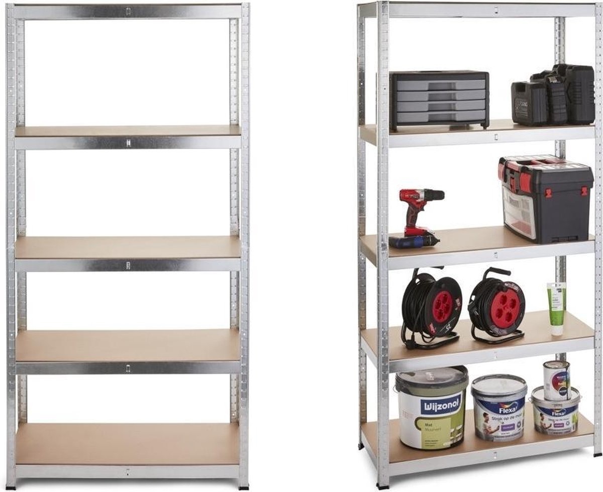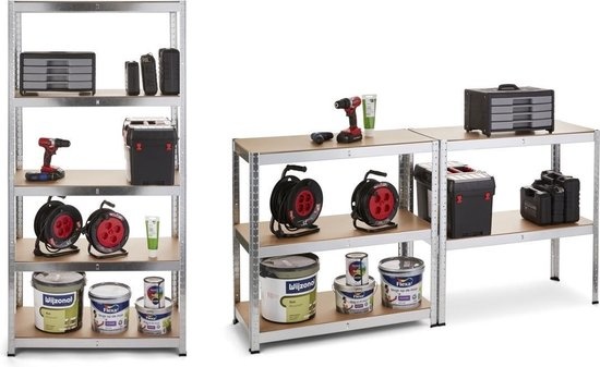 Met deze handige stellingkast kun je overal in huis je spulletjes gemakkelijk opbergen. In totaal kun je tot maar liefst 175 kilo aan spullen kwijt. Dit maakt deze stellingkast meteen ook perfect om zware spullen - zoals bijvoorbeeld gereedschapskisten - op een ordelijke manier op te bergen in je garage of schuur. De kunststof voetdoppen zorgen voor stabiliteit en voorkomen onnodige krassen op de ondergrond. Tot slot is ook de montage een eitje, je hebt hem binnen de kortste keren gemonteerd.