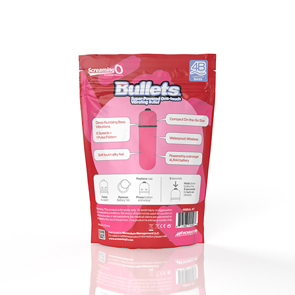 Met hun compacte vorm, krachtige 4B motor die bass-stijl vibraties creëert, nieuwe 4LR44 batterijen die langer meegaan en een opmerkelijk glad, zijdeachtig gevoel, zorgen de Screaming O 4B Bullets voor diepe stimulatie voor betere, meer bevredigende seks! Deze super-krachtige one-touch vibrerende bullets zijn waterproof, verkrijgbaar in vier kleuren, en zijn verpakt in composteerbare, eco-vriendelijke materialen.