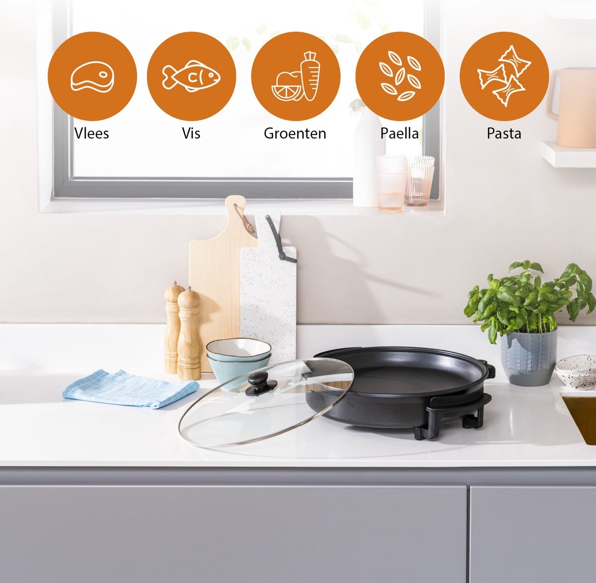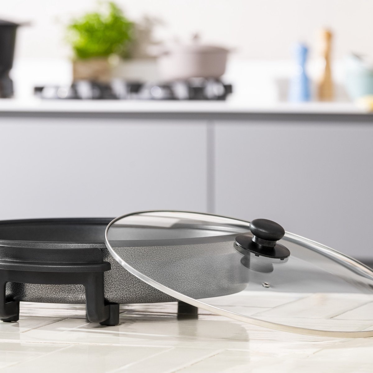 De antiaanbaklaag zorgt voor moeiteloos koken en eenvoudige reiniging, terwijl de 5 instelbare standen je de flexibiliteit geven om verschillende gerechten perfect te bereiden. De geïntegreerde handvaten maken het verplaatsen en opbergen van de bakplaat gemakkelijk, terwijl de antislipvoetjes zorgen voor stabiliteit tijdens het gebruik.