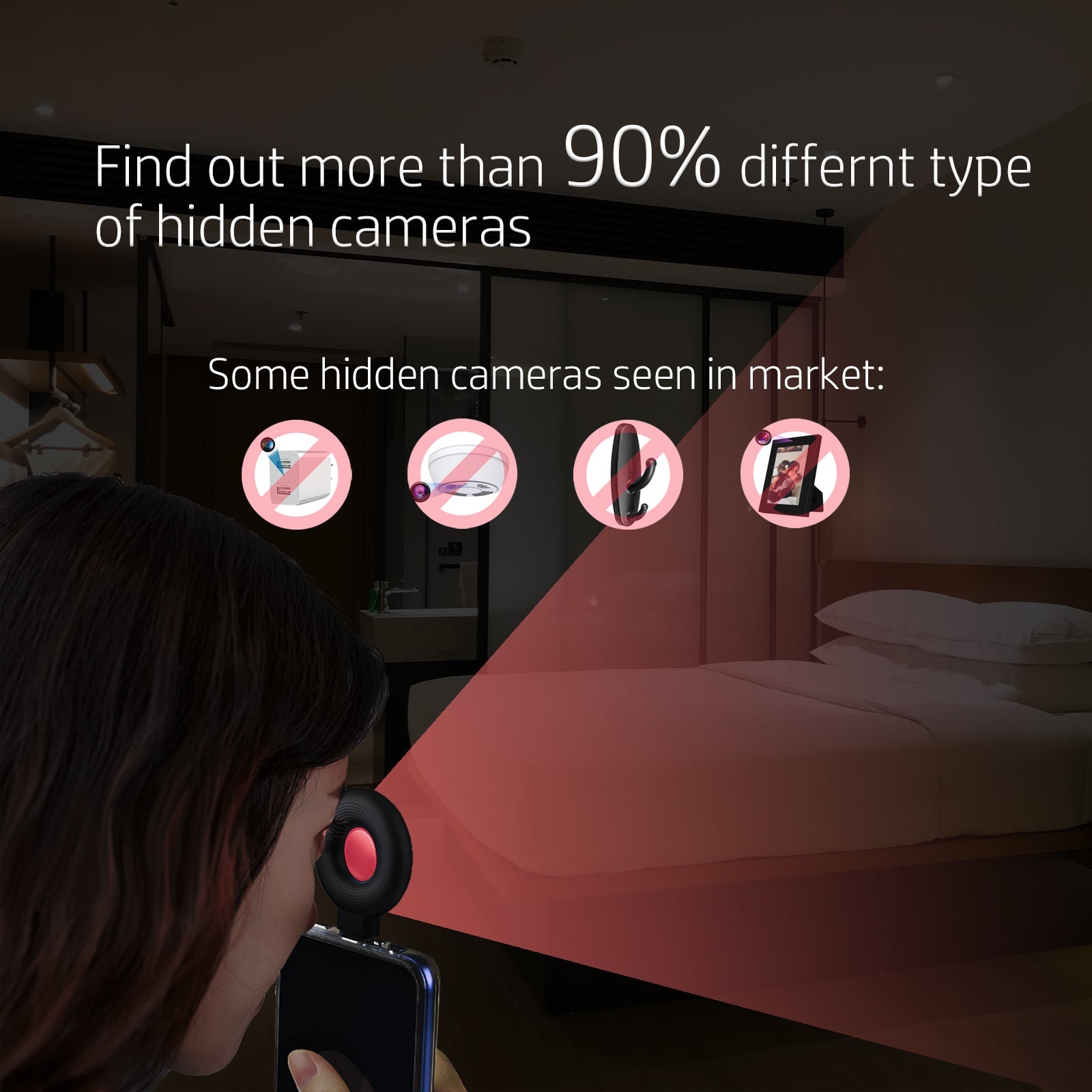 Bescherm uw privacy Camerazoeker kan in bijna alles zitten. Het nieuws staat vol met verborgen camera's in hotels, AirBnB's, badkamers, kleedkamers of vergaderruimten. Wees proactief met uw privacy door verborgen camera's te vinden en te verwijderen.